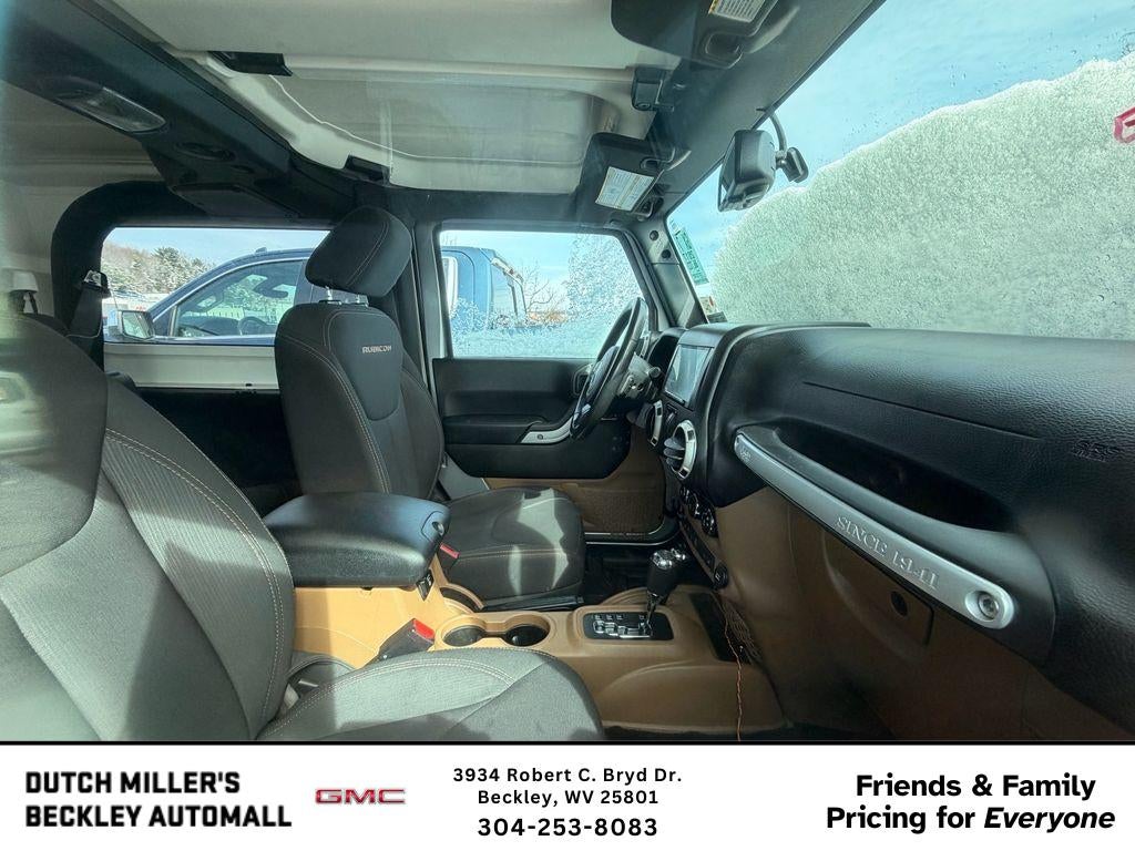 2017 Jeep Wrangler Rubicon 4WD – Beckley, WV. Ready for adventure with rugged capability and city comfort, this hard-to-find Jeep Wrangler Rubicon features a reliable V6 3.6L gasoline engine, 4WD, and Jeep's legendary off-road DNA. Clean CARFAX Report confirms a well-maintained history, giving confidence to your next off-road excursion or daily drive. This Jeep Wrangler Rubicon comes equipped for convenience and connectivity: Hands-Free Bluetooth® for seamless calls and music streaming, Remote Start for comfort in any season, and premium Rubicon trim that includes reinforced axles, heavy-duty suspension, and off-road-ready tires. The interior balances durable materials with modern features, making it ideal for outdoor weekends and everyday use. Located in Beckley, WV, this Jeep Wrangler is competitively priced — we're offering the best price in the area for a 2017 Rubicon with this equipment and condition. Whether you're navigating mountain trails, commuting, or planning a weekend getaway, this Jeep delivers performance and peace of mind. Schedule a test drive in Beckley today and compare—you'll see the value for yourself. Clean CARFAX, V6 3.6L, 4WD, Hands-Free Bluetooth®, and Remote Start—this 2017 Jeep Wrangler Rubicon is ready to go. Contact us to lock in the best price and hit the road.