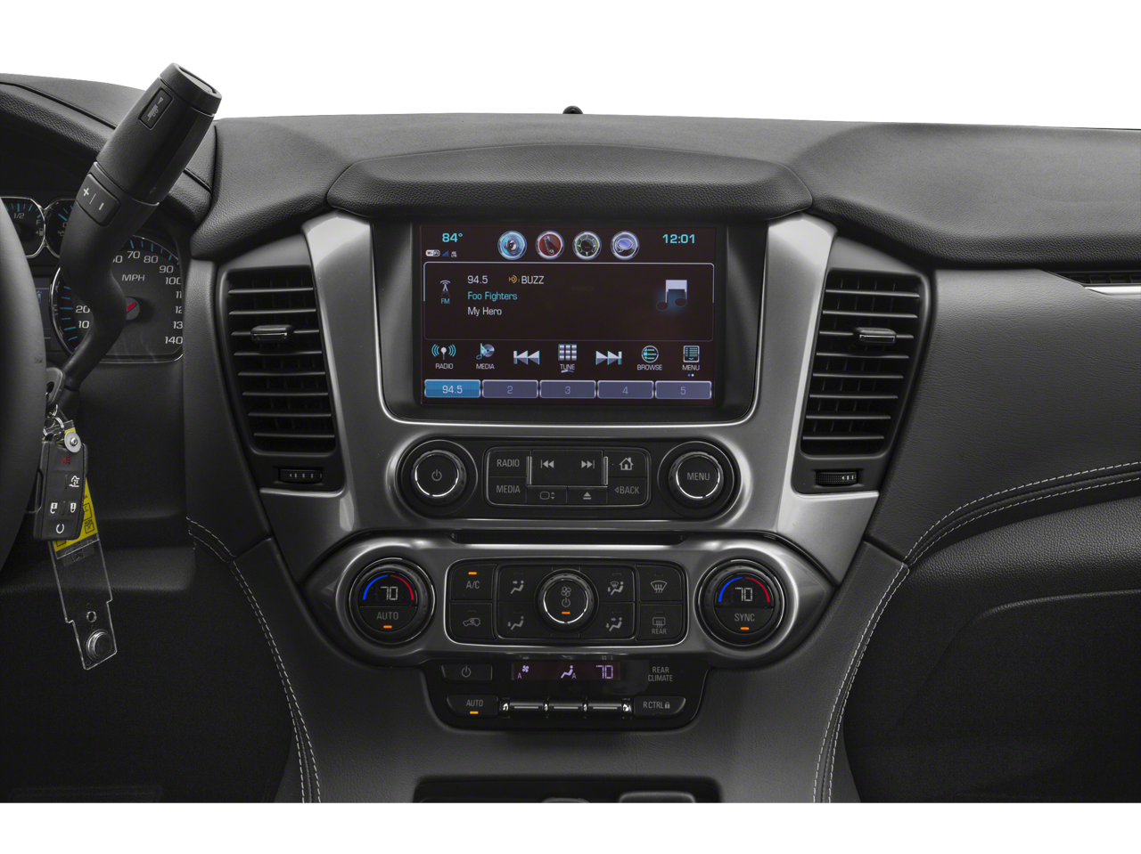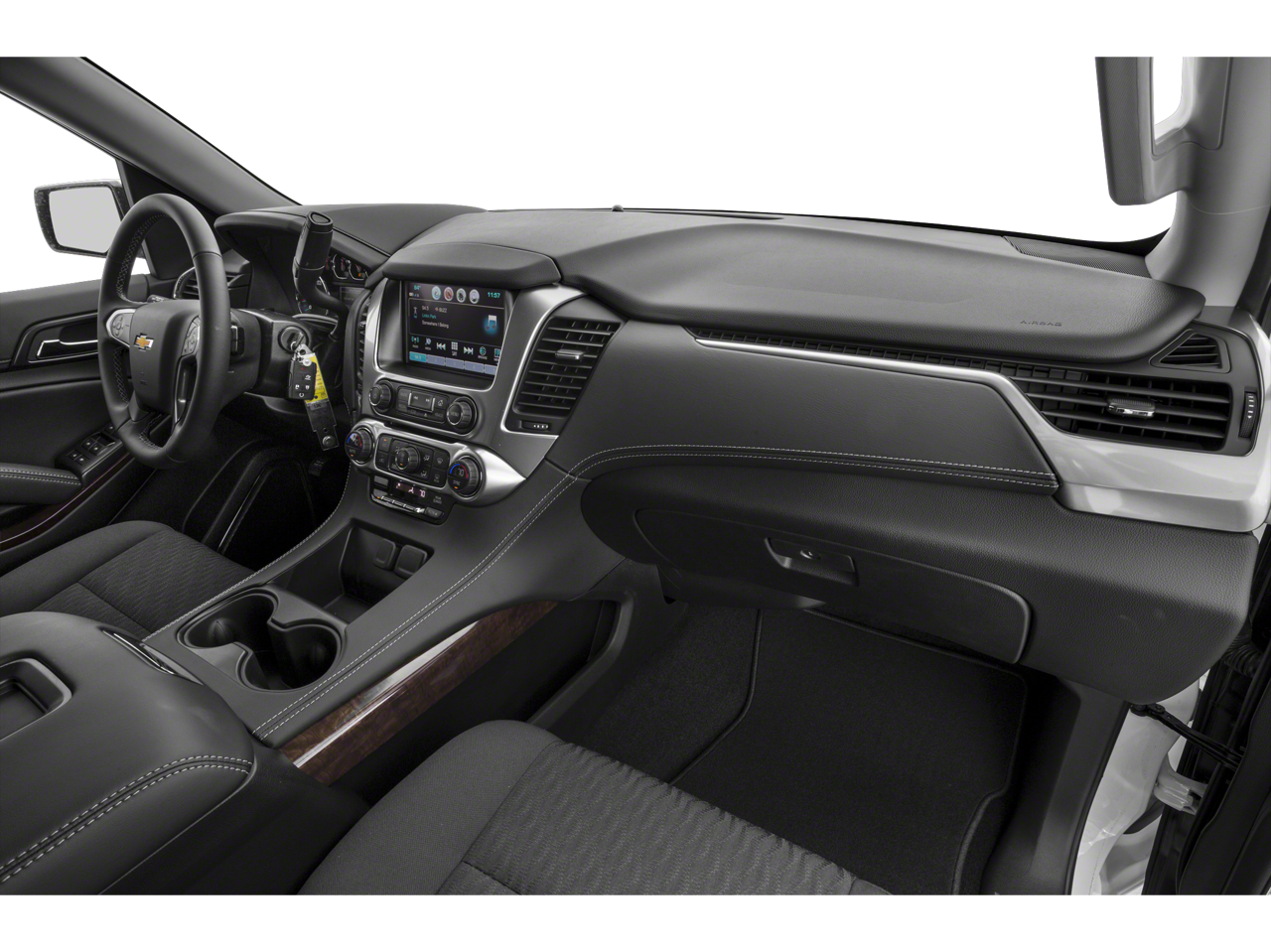 Sun. Entertainment and Destinations Package: Chevrolet MyLink AM/FM Stereo with Navigation; Rear Seat Entertainment System; Power Tilt-Sliding Sunroof with Express-Open/close. Max Trailering Package: 2-Speed Active Electronic Autotrac Transfer Case; Standard Suspension Package; 3.42 Rear Axle Ratio; Integrated Trailer Brake Controller. RST Edition: Black Roof Rails; Body-Color Headlamp Accents; Body-Color Door Handles; P285/45R22 AS BW Tires; Black Nameplate Badging; Front and Rear Black Bow Ties; 22" X 9" Gloss Black Aluminum Wheels; Standard Suspension Package; Black Beltline Moldings; Unique Gloss Black Sport Grille; Black Mirror Caps. Preferred Equipment Group 1LT: Memory Settings; Leather-Appointed Seat Trim; Remote Vehicle Start; Power Liftgate; Rear Park Assist with Audible Warning; Floor Console with Storage Area; 6-Way Power Front Passenger Seat Adjuster; 7. 500 lbs (3. 402 Kgs) GVWR; Enhanced Driver Alert Package; Driver Inboard and Front Passenger Airbags; Universal Home Remote; Color-Keyed Carpeting Floor Covering; Extended-Range Remote Keyless Entry; 12-Volt Auxiliary Power Outlet (5); 2nd Row