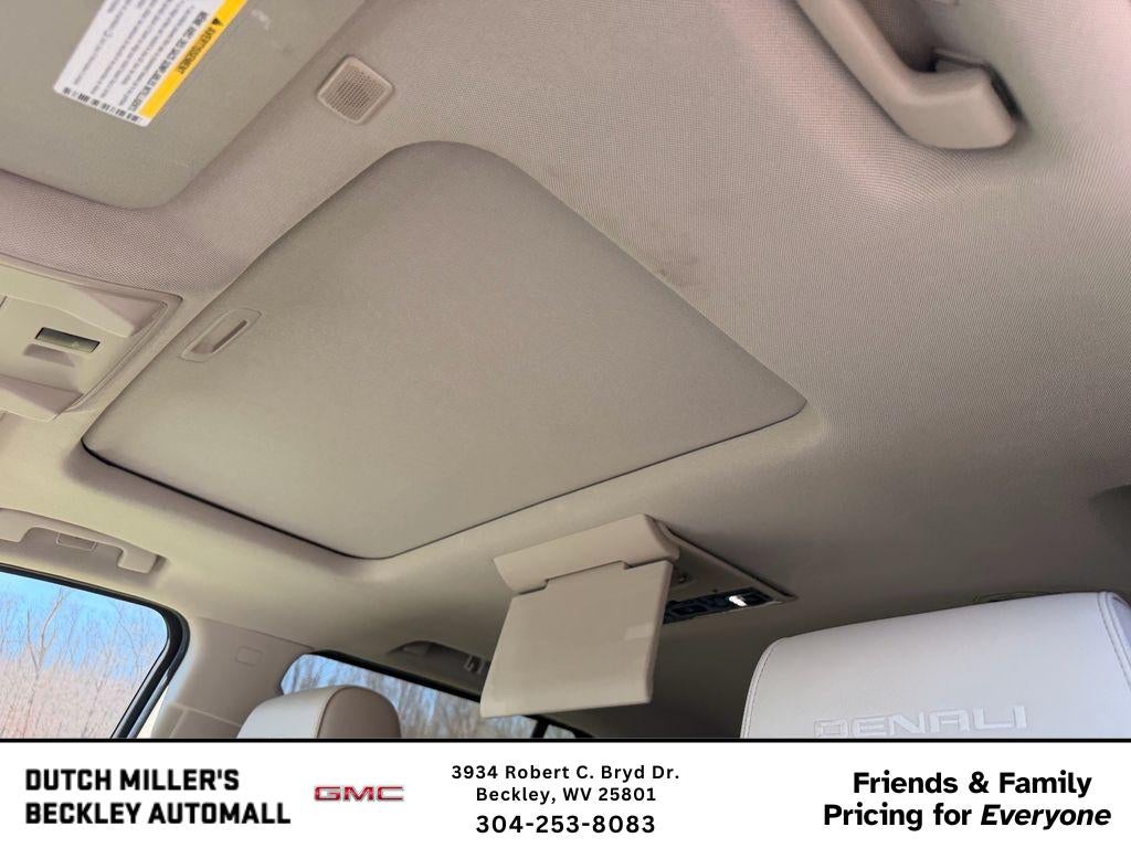 Open Road Package: Rear Seat Blu-Ray/DVD Entertainment System; Power Tilt-Sliding Sunroof with Express-Open/close. Enhanced Security Package: Theft-Deterrent Alarm System; Vehicle Interior Movement Sensor; Vehicle Inclination Sensor. Denali Ultimate Package: Power Retractable Assist Steps with Perimeter Lighting; 22" X 8.5" Bright Aluminum Wheels; Wheel Locks. Preferred Equipment Group 5SA: Memory Package; Heated Leather-Wrapped Steering Wheel; 3.23 Rear Axle Ratio; High-Capacity Air Cleaner; AM/FM/SiriusXM Radio with Navigation; Enhanced Driver Alert Package; 5 Auxiliary 12-Volt Power Outlets; Rear Cross Traffic Alert; Wireless Charging; Universal Home Remote; Hands Free Power Programmable Rear Liftgate; 2-Speed Electronic Autotrac Active Transfer Case; Full-Feature Reclining Bucket Seats; Bose Active Noise Cancellation; Lane Change Alert with Side Blind Zone Alert; Integrated Trailer Brake Controller; Black Assist Steps with Chrome Strip; Power Tilt and Telescopic Steering Column; Passive Entry System; Inside Rearview Auto-Dimming Mirror; Power-Adjustable Pedals For Accelerator and Brake; Push Button Keyless Start; Power Release 2nd Row Bucket Seats; Electronic 10-Speed Automatic Transmission with Overdrive; 4-Wheel Antilock Disc Brakes. Advanced Adaptive Cruise Control: 4-Wheel Disc and 4-Wheel VAC Power Antilock Brakes; Forward Automatic Braking. 22" X 9" 6-Spoke Chrome Multi-Feature Design Wheels. 22" X 8.5" Bright Aluminum Wheels. Rear Seat Blu-Ray/DVD Entertainment System. Power Retractable Assist Steps with Perimeter Lighting. Power Tilt-Sliding Sunroof with Express-Open/close. Dark Sky Metallic. All-Weather Floor Mats. Wheel Locks. **Equipment listed is based on original vehicle build and subject to change. Please confirm the accuracy of the included equipment by calling the dealer prior to purchase.**