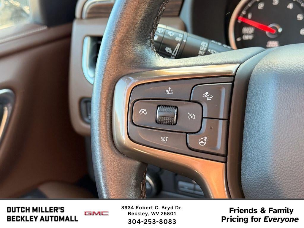 Max Trailering Package: Extra Capacity Cooling System. Advanced Trailering Package: Trailer Side Blind Zone Alert; Advanced Trailering System; Integrated Trailer Brake Controller; Hitch Guidance with Hitch View. Premium Package: Dual-Pane Power Panoramic Sunroof; Power-Retractable Assist Steps; Adaptive Cruise Control. Preferred Equipment Group 3LZ: Bright Front and Rear Door Sill Plates; Memory Settings; Perforated Leather Seat Trim; Remote Start; 3rd Row 60/40 Power-Folding Split-Bench Seat; Front and Rear Park Assist; Safety Alert Seat; Chrome Door Handles with Body-Color Strip; Hill Descent Control; Floor Console with Storage Area; 6.2L EcoTec3 V8 Engine; Rear Camera Mirror Washer; Inside Rearview Auo-Dimming Rear Camera Mirror; Automatic Heated Steering Wheel; LED Daytime Running Lamps; Rear Cross Traffic Alert; Wheels: 22" X 9" Sterling Silver Premium Painted; Driver and Front Outboard Passenger Airbags; Front High-Back Reclining Bucket Seats; Universal Home Remote; Color-Keyed Carpeting Floor Covering; Enhanced Driver Information Center; Heated 2nd Ro