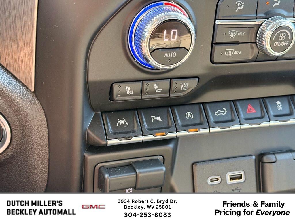 Driver Alert Package I: Ultrasonic Front and Rear Park Assist; Rear Cross Traffic Alert; Lane Change Alert with Side Blind Zone Alert. Driver Alert Package II: Forward Collision Alert; Lane Keep Assist with Lane Departure Warning; Front Pedestrian Braking; Following Distance Indicator; Automatic Emergency Braking; IntelliBeam Automatic High Beam On/off; Adaptive Cruise Control. Technology Package: HD Surround Vision with 2 Trailer View Camera Provisions; Multicolor 15" Diagonal Head-Up Display; Bed View Camera; Rear Camera Mirror. Denali Ultimate Package: GMC MultiPro Power Steps; Power Sunroof; Wheel Locks (set of 4); 22" X 9" Multi-Dimensional Polished Aluminum Wheels. Preferred Equipment Group 5SA: Chrome Wheel to Wheel Assist Steps; 2 USB Ports (1st Row); Power Sliding Rear Window with Rear Defogger; Safety Alert Seat; Electric Rear-Window Defogger; Theft Deterrent System (unauthorized Entry); Signature Denali Grille; Heavy-Duty Air Filter; Compass; 120-Volt Instrument Panel Power Outlet; Heated Driver and Front Outbo