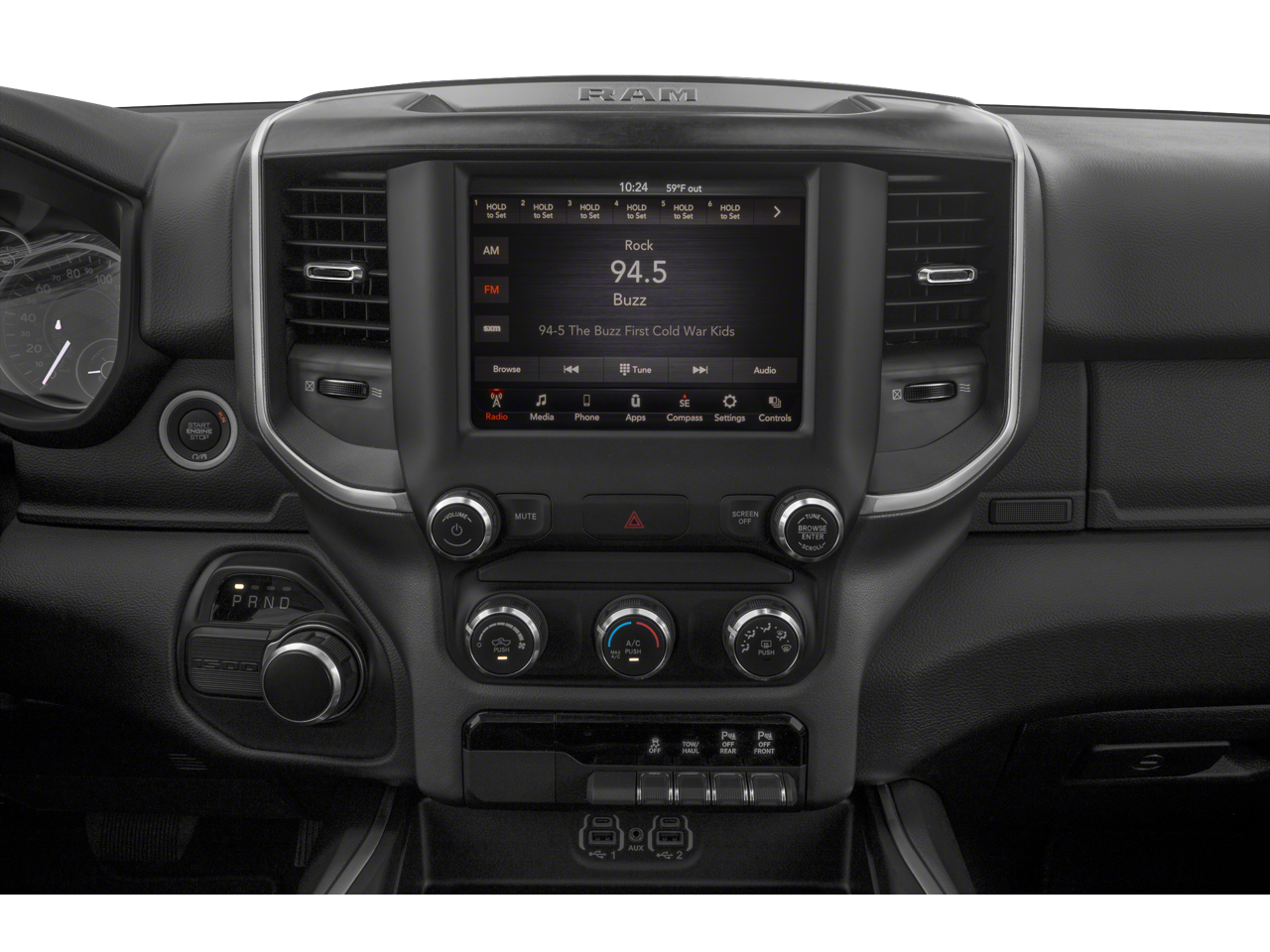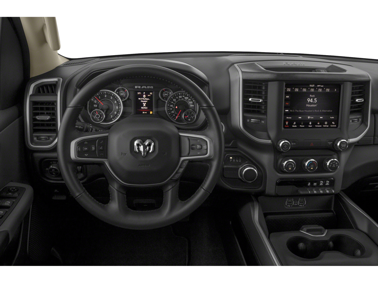 Quick Order Package 25Z Big Horn: Big Horn Badge. Big Horn Level 2 Equipment Group: SiriusXM Radio Service; Uconnect 4 Radio with 8.4" Display; Rear Window Defroster; ParkSense Front/rear Park Assist with Stop; Rear View Auto Dim Mirror; Power Adjustable Pedals; For More Info. Call 800-643-2112; Rear Power Sliding Window; Rear Dome with On/off Switch Lamp; Glove Box Lamp; Power 4-Way Driver Lumbar Adjust; 115V Auxiliary Rear Power Outlet; Media Hub with 2 Charge Only USBs; Power 8-Way Driver Seat; Auto Dim Exterior Driver Mirror; Heated Front Seats; Heated Steering Wheel; Foam Bottle Insert (door Trim Panel); Class IV Receiver Hitch; Security Alarm; Black Premium Power Mirrors; Big Horn Instrument Panel Badge; Remote Start System; SiriusXM Satellite Radio; Exterior Mirrors with Supplemental Signals; Exterior Mirrors Courtesy Lamps; Air Conditioning ATC with Dual Zone Control; 115V Auxiliary Power Outlet; Cluster 7.0" TFT Color Display; Universal Garage Door Opener; Power-Folding Mirrors; Sun Visors with Illuminated Vanity Mirrors. Quick Order Package 23Z Big Horn: Big Horn Badge. Deluxe Cloth Bucket Seats. ParkSense Front/rear Park Assist with Stop. Remote Start System. MOPAR Front and Rear Rubber Floor Mats. 115V Auxiliary Power Outlet. Diamond Black Crystal PC. **Equipment listed is based on original vehicle build and subject to change. Please confirm the accuracy of the included equipment by calling the dealer prior to purchase.**