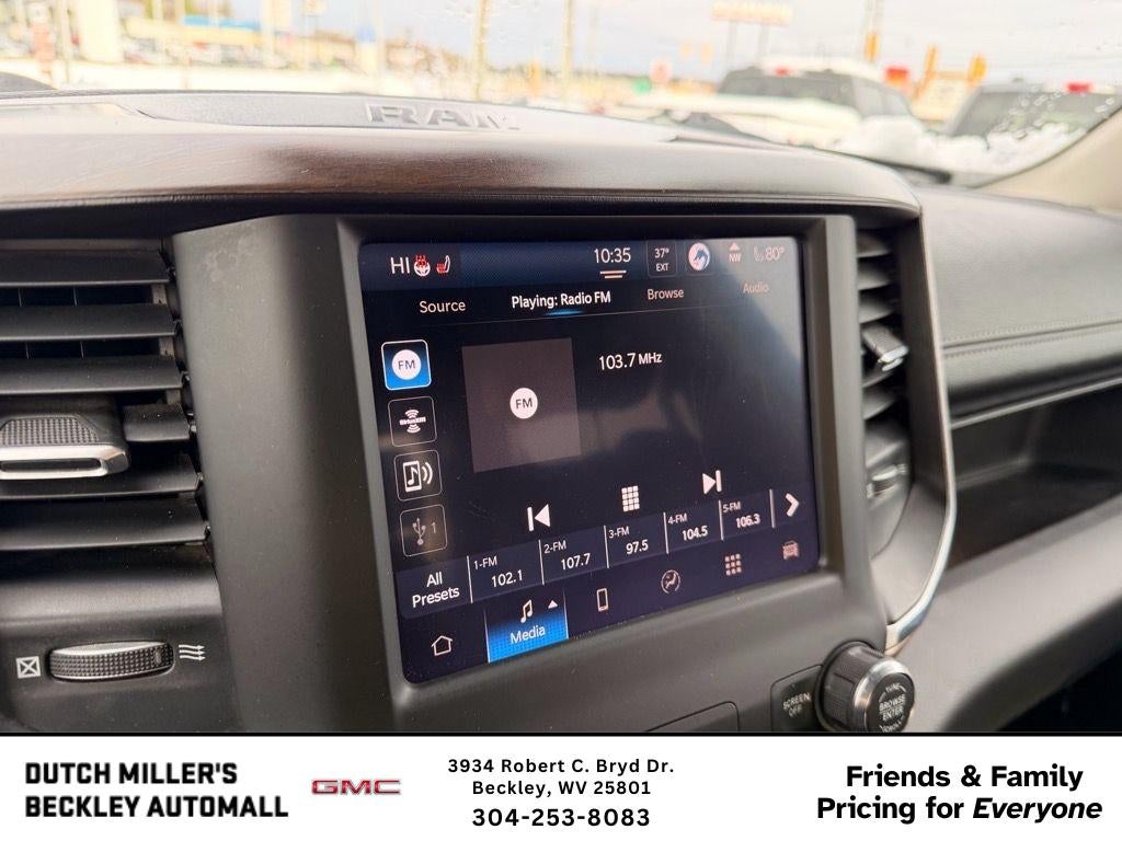 2022 Ram 1500 Laramie 4WD — Powerful V8 performance meets refined comfort in Beckley, WV. This eye-catching crew cab is powered by the legendary 5.7L V8 Gasoline engine paired with 4-wheel drive, delivering confident towing, brisk acceleration, and composed handling whether you're navigating mountain roads or hauling work gear. The Laramie trim elevates every drive with premium leather seats that cradle occupants on long trips and give the cabin a luxurious feel. Stay connected and entertained with Apple CarPlay, and enjoy convenience features like Remote Start for cold West Virginia mornings and a Back-Up Camera that makes parking and hitching trailers effortless. This Ram comes with a CARFAX Clean Report, giving you peace of mind about its history and maintenance. Well-equipped, well-maintained, and competitively priced — this truck represents the best price in the area for a 2022 Laramie with these features. Perfect for commuters, adventurers, and tradespeople who want capability without sacrificing comfort, this Ram 1500 Laramie balances utility and refinement. Located in Beckley, WV, it's ready for a test drive today. Don't miss your chance to own a powerful, feature-rich pickup with excellent value — schedule a viewing and drive home a 2022 Ram 1500 Laramie that checks every box.