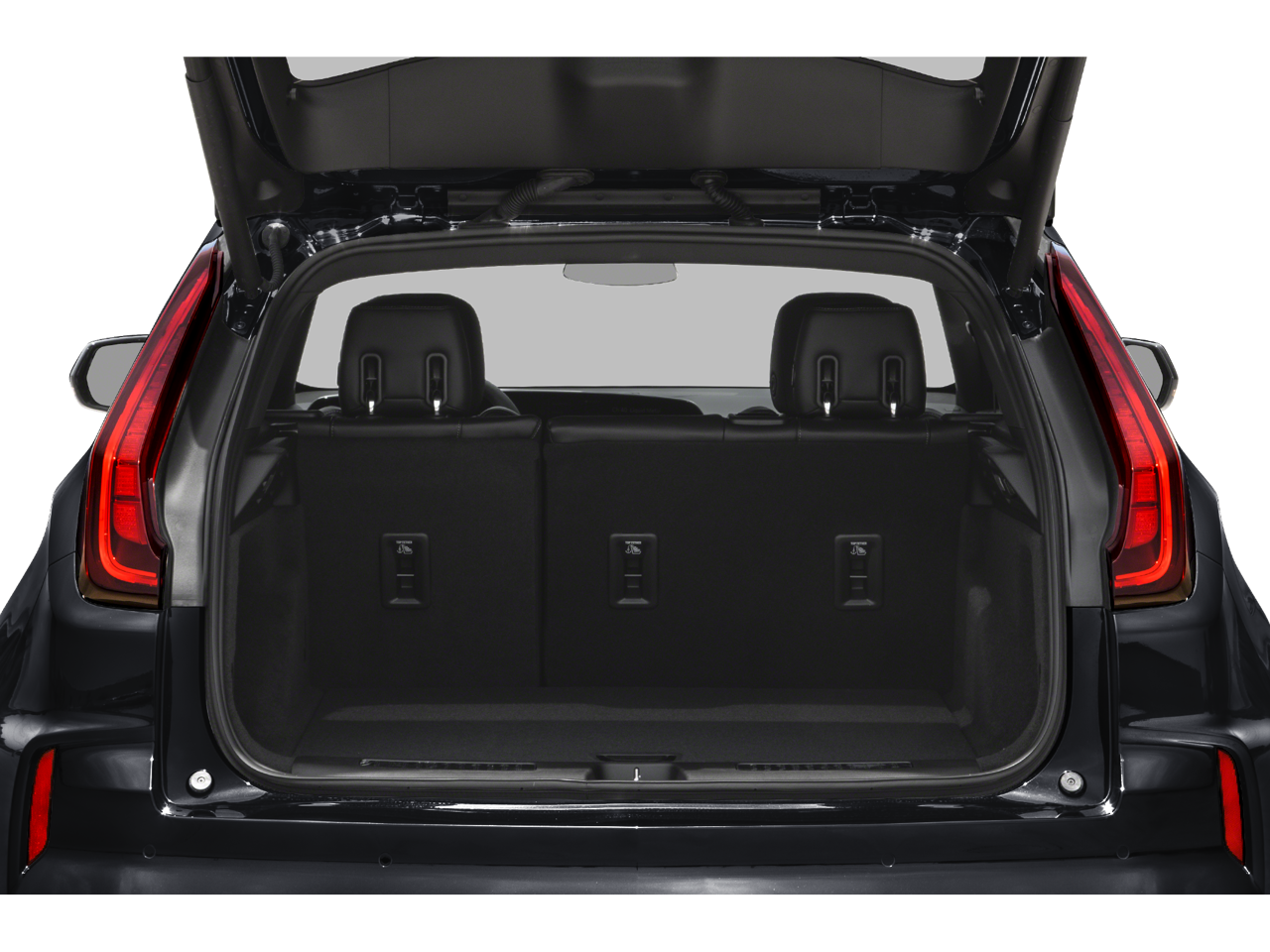 - Opens or closes when the system senses the key fob and the driver extends their foot under the left-hand side of the rear bumper over an image of the Cadillac Crest projected under the vehicle