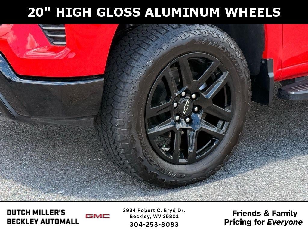 Protection Package: Rear Wheelhouse Liners; Chevytec Spray-On Black Bedliner. Preferred Equipment Group 2LT: HD Rear Vision Camera; LED Cargo Area Lighting; Rear 60/40 Folding Bench Seat (folds Up); Cloth Seat Trim; SiriusXM with 360L; Bluetooth® For Phone; Electrical Steering Column Lock; Trailering Package; Standard Tailgate; Front LED Fog Lamps; 40/20/40 Front Split-Bench Seat; Suspension Package; Steering Wheel Audio Controls; Color-Keyed Carpeting Floor Covering; OnStar and Chevrolet Connected Services Capable; Power Front Windows with Passenger Express Down; Inside Rearview Mirror with Tilt; 2-Speed Transfer Case; Deep-Tinted Glass; 12.3" Multicolor Reconfigurable Digital Display; 6-Speaker Audio System; All-Weather Floor Liner; High Gloss Black Mirror Caps; Electronic Cruise Control; Power Rear Windows with Express Down; Chevy Safety Assist; Performance Red Recovery Hooks; Power Front Windows with Driver Express Up/down; EZ Lift Power Lock and Release Tailgate; Convenience Package; TurboMax Engine; Auto-Locking Rear Differential; Heated Power-Adjustable Outside Mirrors. 6" Rectangular Black Tubular Assist Steps. 20" X 9" High Gloss Black Painted Aluminum